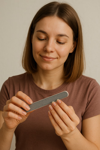 Для підпилювання нігтів обирайте м’які пилочки — вони більш щадно впливають на нігтьову пластину. Важливо також дотримуватися правильної техніки: ні в якому разі не пиліть нігті рухами “туди-сюди”, адже це пошкоджує їхню структуру і робить ламкими.