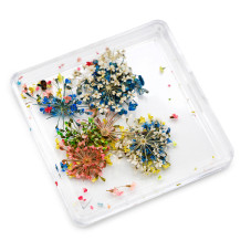Якщо ви вперше намагаєтесь створити манікюр із сухоцвітами, почніть з невеликих елементів декору. Закрийте нігтьову пластину лаком, терпляче зачекайте, коли він висохне. Далі нанесіть тонкий шар клею на пластину нігтя, заставлений її повністю. Потім, дуже обережно, пінцетом покладіть сухоцвіти на клей, сплющіть пінцетом. В якості верхнього шару можна нанести лак з об’ємом, щоб підсилити ефект.